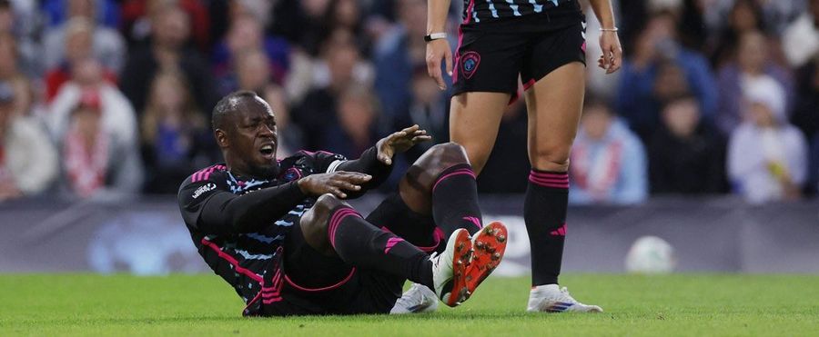 ボルト氏はロンドンで9日に行われたチャリティーマッチ「サッカーエイド」に参加。ワールド・イレブンの主将としてセンターバックで出場し、イングランドと対戦した。しかし、試合途中に相手を止めようとしたところ、芝に足をひっかけたような形で地面に倒れ込み、その後、担架で運ばれた。